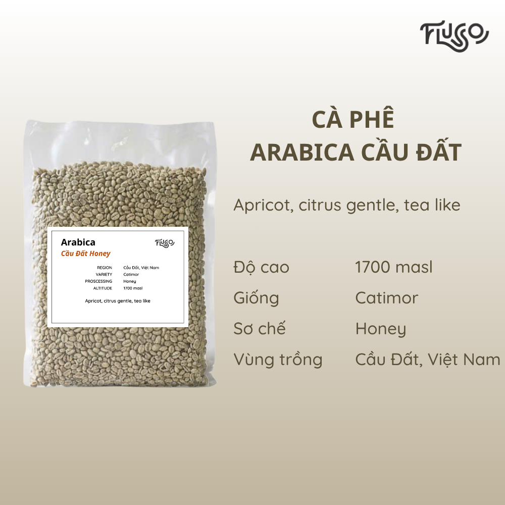 Arabica Cầu Đất Honey là hạt cà phê Arabica chất lượng cao, được trồng tại cao nguyên Cầu Đất, Lâm Đồng, ở độ cao 1700 masl, nơi khí hậu mát mẻ và đất đỏ bazan giàu khoáng chất giúp hạt cà phê phát triển chậm, giữ trọn hương vị tự nhiên. Giống Catimor được sơ chế Honey, tạo nên sự cân bằng hoàn hảo giữa vị ngọt tự nhiên và độ thanh mượt của hạt.