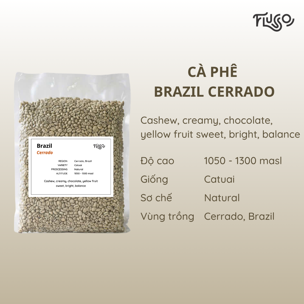 Trải nghiệm Brazil Cerrado để cảm nhận sự hòa quyện tinh tế giữa hương hạt điều, socola và trái cây vàng ngọt dịu, tạo ly cà phê cân bằng, tươi sáng và chuẩn specialty.