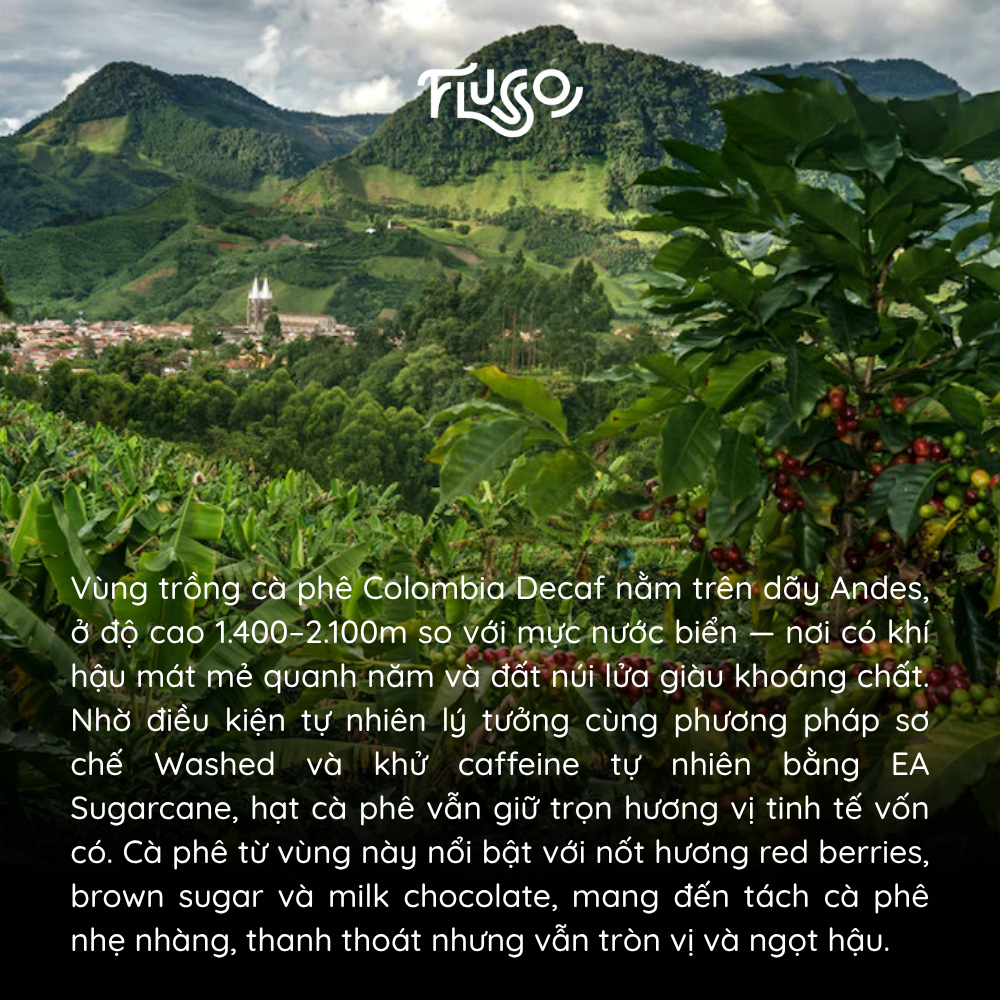 Kết quả là cà phê Colombia Decaf vẫn giữ được hương vị tròn đầy, vị bánh wafer và sô-cô-la sữa đặc trưng – mang lại trải nghiệm cân bằng, dễ chịu và phù hợp với những ai yêu thích cà phê nhưng muốn hạn chế caffeine.