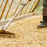 Những hộ nông dân nhỏ — nhiều người chỉ sở hữu chưa đến 1 mẫu đất — mang quả cà phê chín đến trạm sơ chế cộng đồng tại Worka để xử lý.