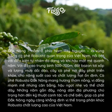 Hạt cà phê sở hữu hương Milk Chocolate, Caramel, với hậu vị ngọt dịu kéo dài, tạo trải nghiệm thưởng thức tròn đầy, dễ chịu và tinh tế. Lý tưởng để rang vừa hoặc dark, pha espresso, drip hoặc French press, phù hợp với các tín đồ Robusta specialty và barista chuyên nghiệp.