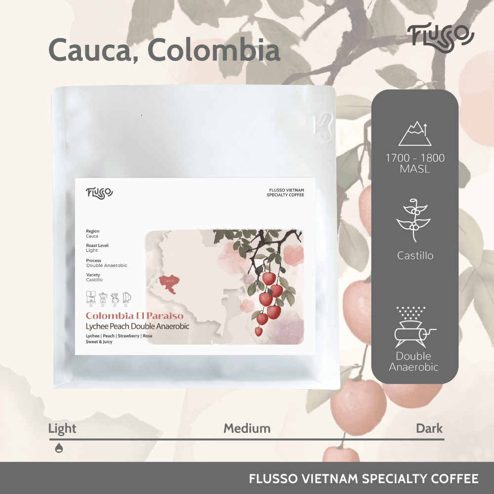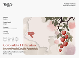 Điểm làm nên dấu ấn đặc biệt của El Paraiso Lychee Peach nằm ở phương pháp Double Anaerobic – quy trình lên men yếm khí kép, được kiểm soát chặt chẽ về thời gian và nhiệt độ. Quá trình này giúp khuếch đại hương trái cây chín, tăng độ ngọt mọng và tạo nên cấu trúc hương vị dày, rõ nét nhưng vẫn giữ được sự cân bằng và thanh sạch.
