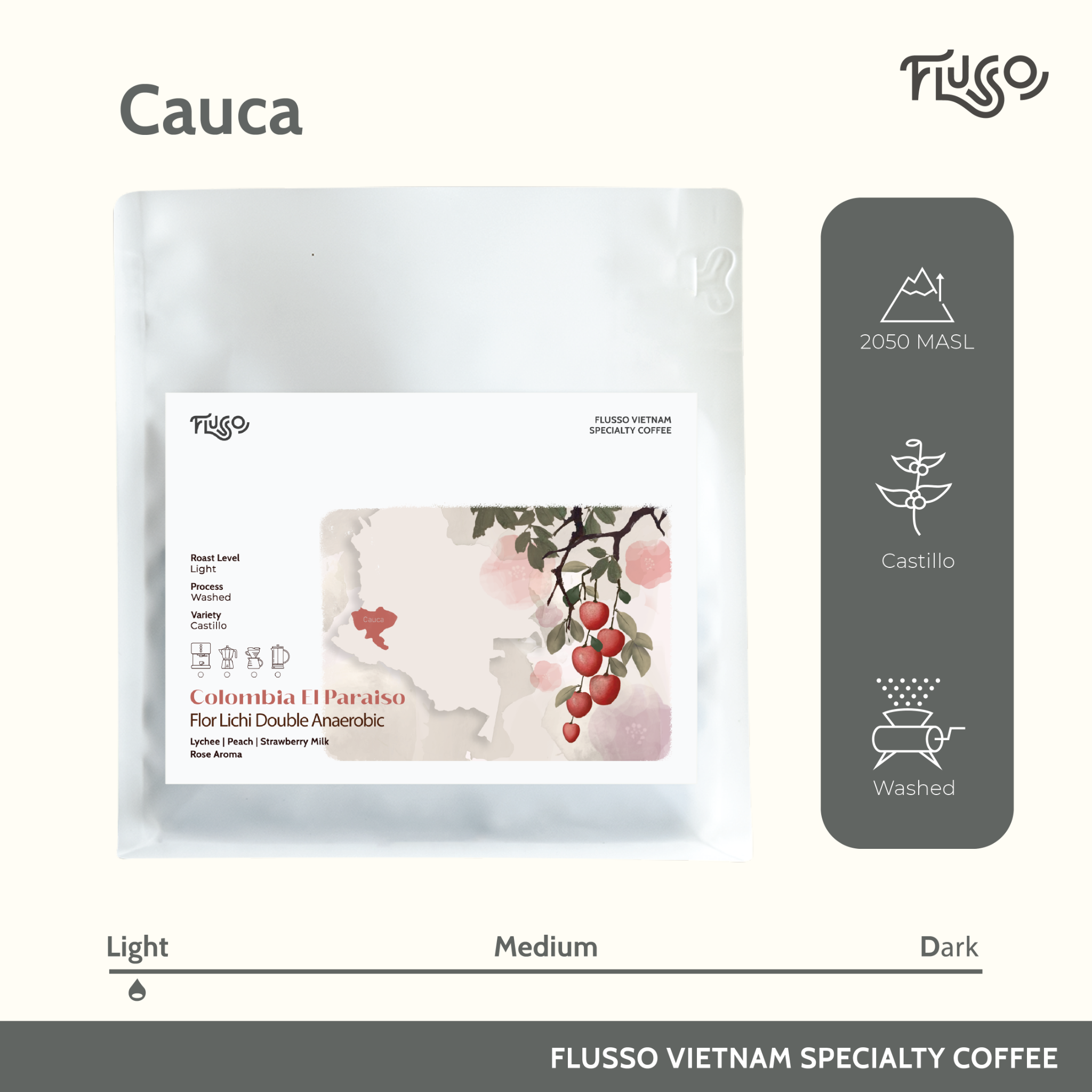 Với Colombia Cauca Finca El Paraiso Double Anaerobic Flor Lichi bạn sẽ sớm bị lôi cuốn bởi hương khô của vải ngọt ngào, tươi mát của đào, chua dịu cùng chút ngậy của sữa dâu và viền hương hoa hồng tinh tế. Khi nhấp một ngụm, trước khi đắm chìm trong vị ngọt cùng sự mềm mại mọng nước như thạch trái cây của vải thiều, nước mật ong đào và sữa dâu hòa quyện, bạn sẽ bị chinh phục bởi hương hoa hồng ngọt ngào đầy quyến rũ.