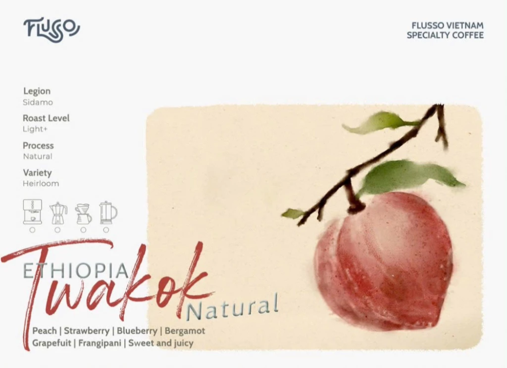 Trong tiếng Ethiopia, Twakok nghĩa là quả đào. Sở dĩ nó được đặt cho hạt cà phê này là bởi hương vị đào ngọt ngào sẽ xuất hiện ngay từ hương khô và xuyên suốt trong quá trình bạn thưởng thức. Sau khi chiết xuất xong cà phê, khi cà phê vẫn còn đang nóng, đây là thời điểm tốt nhất để bản cảm nhận mùi hương, với cà phê Twakok chế biến tự nhiên, bạn sẽ cảm nhận được hương vị trái cây của đào, vải, việt quất và nho đen cùng với hương hoa hồng tinh tế.