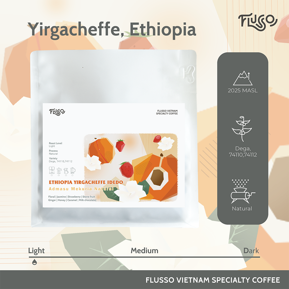 Idedo là một thị trấn thuộc Yirgacheffe Woreda, vùng Gedeo, Ethiopia. Sở hữu độ cao và nhiệt đối tương đối mát hơn, Idedo và vùng cao nguyên xung quanh được biết đến là nơi sản xuất loại cà phê chất lượng tốt nhất tại Yirgacheffe. Cà phê làn này đến từ trang trại của Admasu Mekuria, Yirgacheffe Idedo - một trong những trang trại nổi bật tại Idedo.