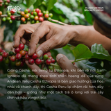 Được sơ chế bằng phương pháp Washed, hạt cà phê được loại bỏ lớp vỏ và thịt quả một cách cẩn thận, sau đó lên men và rửa sạch bằng nước suối tự nhiên. Quá trình này giúp làm nổi bật các tầng hương hoa và trái cây thanh khiết – điểm đặc trưng làm nên danh tiếng của giống Gesha trứ danh.