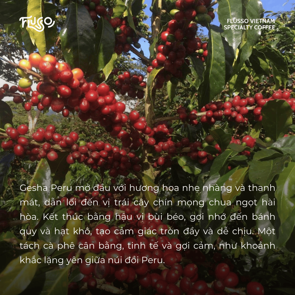 Khi thưởng thức, Peru Gesha mở ra một trải nghiệm nhẹ nhàng và quyến rũ. Mùi hoa nhài thoang thoảng dẫn lối, kế tiếp là sự ngọt ngào từ quả mơ và mận chín, gợi cảm giác thanh tao và đầy nữ tính. Đặc biệt, dư vị bánh quy đậu phộng mang đến điểm nhấn ấm áp và lạ miệng, khiến tách cà phê trở nên đầy cá tính mà vẫn giữ được nét thanh lịch.