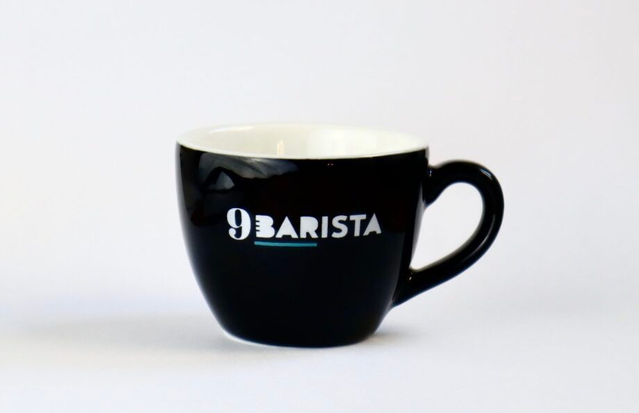 Tách espresso từ thương hiệu 9Barista được thiết kế với thành ly dày có tác dụng giữ nhiệt cho cà phê trong suốt quá trình thưởng thức. Tách được làm từ chất liệu sứ tráng men cao cấp với mà đen sang trọng in cùng logo 9barista bên ngoài. Phía trong lòng cốc được giữ nguyên màu trắng để người uống có thể dễ dàng theo dõi màu sắc và chất lượng của cà phê.